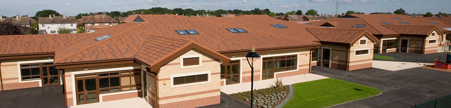 Priory Lincoln Academy Roofed with Metortile Lightweight Roofing in Bond Brindle