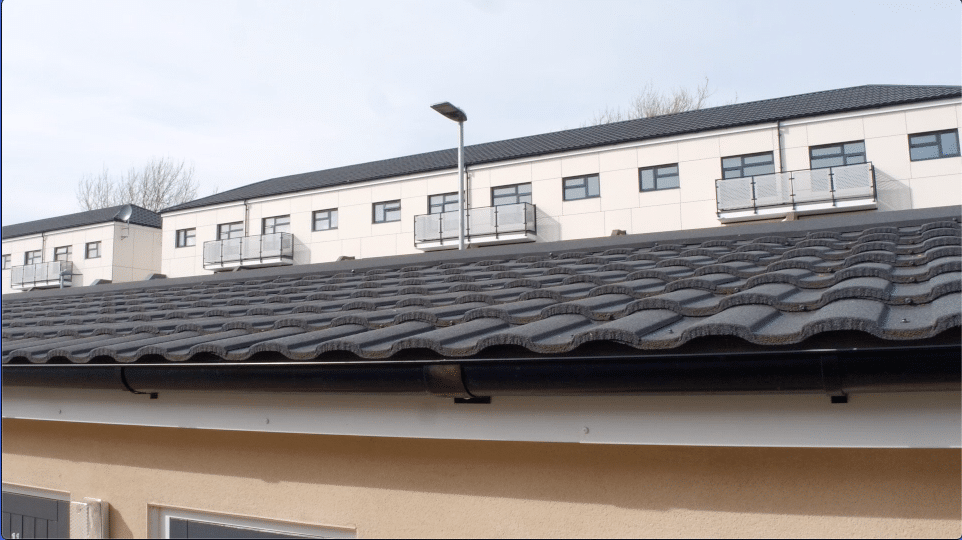 To achieve this, Mears contracted William Cooper Roofing to install an Ash & Lacy Ashjack steel frame so approx 3000m2/6300 Metrotile Roman roof profiles in Charcoal could be installed over the four blocks. In addition to the roof tiles, a full Metrotile ventilation system was installed using vent tiles and flexible adaptors to connect to the original ventilation from the fat roof beneath.